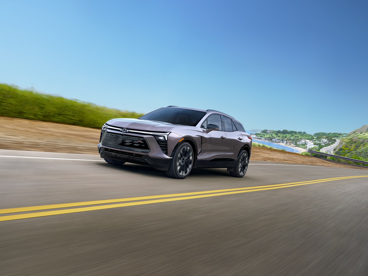 Chevrolet gave the Blazer EV a bold, futuristic exterior design to match its advanced electric powertrain. The front end features a unique closed grille and slender LED headlights with auto on/off control. Sweeping body lines give the Blazer EV a planted yet aerodynamic look. With a length of 192.2 inches, width of 78 inches, and height of 65 inches, the Blazer EV maintains a muscular but efficient stance. The available 21-inch wheels complement the exterior styling nicely.